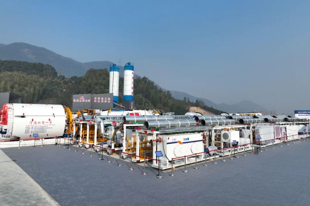 作為省、市重點工程建設(shè)項目,寧波市水庫群東西線聯(lián)通工程位于寧波市奉化區(qū)南部山區(qū),工程設(shè)計輸水規(guī)模為40萬m³/d。建設(shè)內(nèi)容包括一條干線、兩條支線,以及沿線調(diào)節(jié)站及各類閥井,全線總長約40.54km。6#隧洞作為本工程重要節(jié)點性分部工程,全長約12.28km,采用鉆爆法+TBM(全斷面硬巖掘進(jìn)機(jī))進(jìn)行隧洞開挖。值得一提的是,本次所采用的敞開式TBM設(shè)備“寧波水務(wù)一號”,其開挖直徑4.03米,整機(jī)長度約225米,掘進(jìn)長度10.87km,為寧波水利行業(yè)首次應(yīng)用。