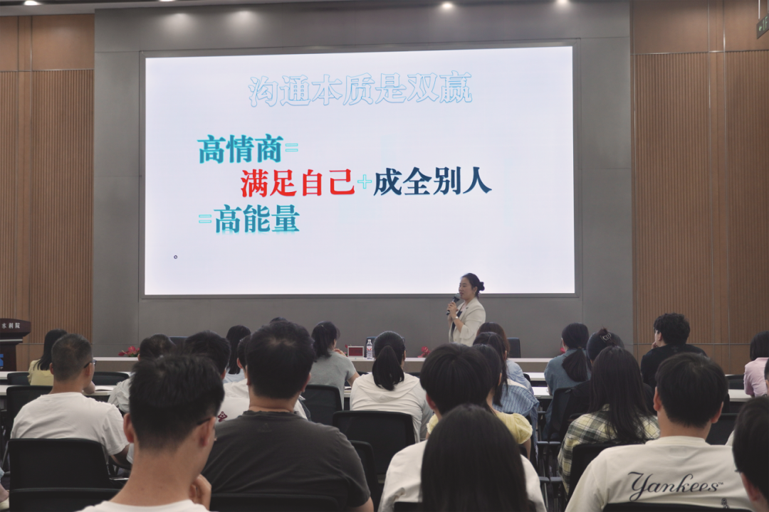 為提升員工的溝通能力與團隊協(xié)作效率,2025年9月18日下午,我院工會在院一樓報告廳舉辦了一場主題為“從自我激勵到高效協(xié)同的溝通法則”專題講座。本次講座聚焦職場溝通,特邀禮儀專家、教育學(xué)碩士陳瑛擔(dān)任主講。我院各部門近70名員工積極參與,現(xiàn)場氣氛熱烈。