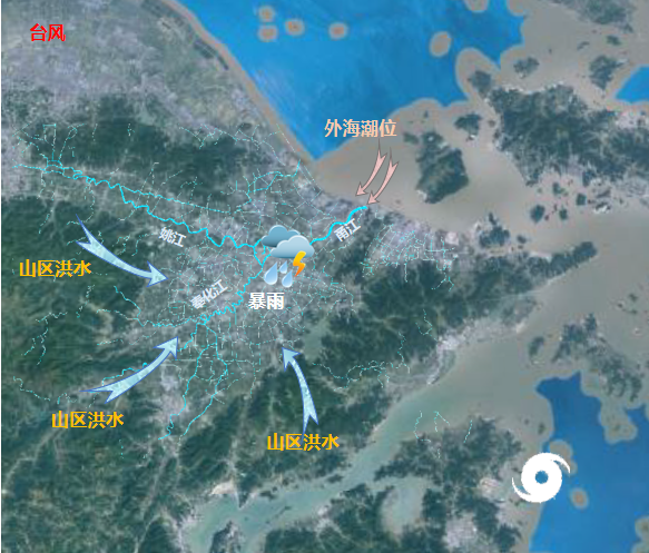 地形之困:地勢三面環(huán)山、一面臨海,三江干流穿城而過,極易形成風(fēng)、暴、潮、洪“四碰頭”的不利局面。