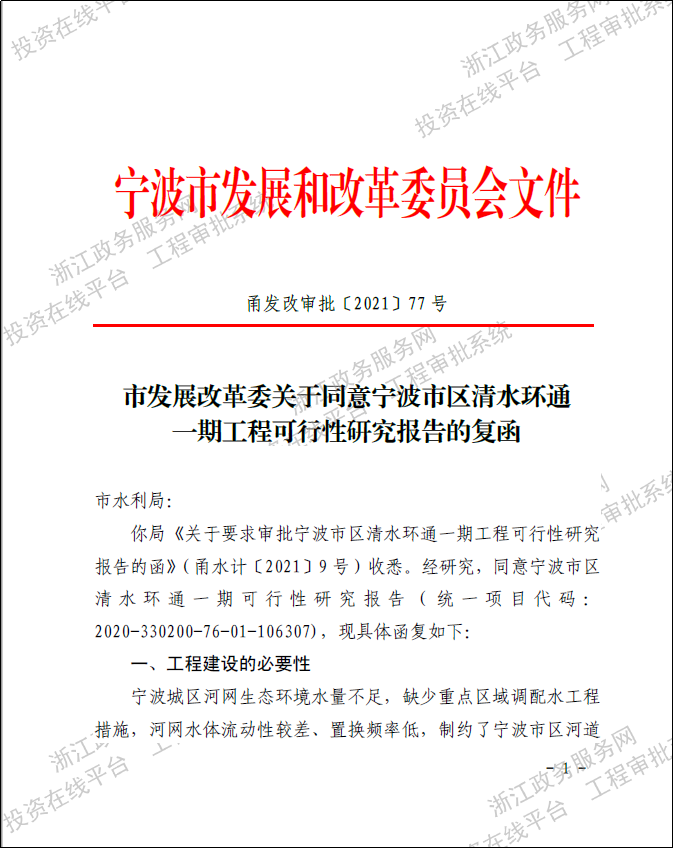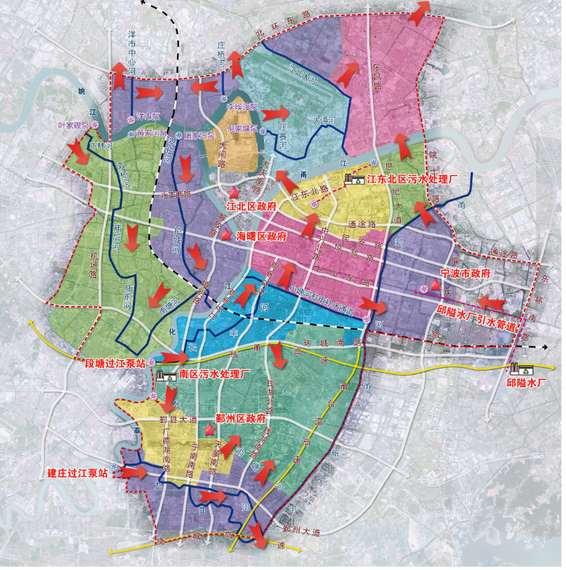 寧波市區(qū)清水環(huán)通一期工程西起機場高架、東至福慶路,北起北環(huán)高架,南至鄞州大道,面積合計約146km2,是寧波市區(qū)重要的河網(wǎng)引配水工程,亦是緩解老城內(nèi)澇壓力的有力舉措。為提升河網(wǎng)環(huán)境用水量、促進水系互聯(lián)互通、改善水體流態(tài),寧波市區(qū)清水環(huán)通一期工程創(chuàng)新性的引入“精準補水、高速水路”的計理念,切實解決了寧波城區(qū)現(xiàn)狀大水漫灌的河網(wǎng)調(diào)水模式下調(diào)水效率低下、補水針對性不強等痛點、難點問題。該工程可研報告于2021年5月獲寧波市發(fā)展和改革委員會批復(fù)。