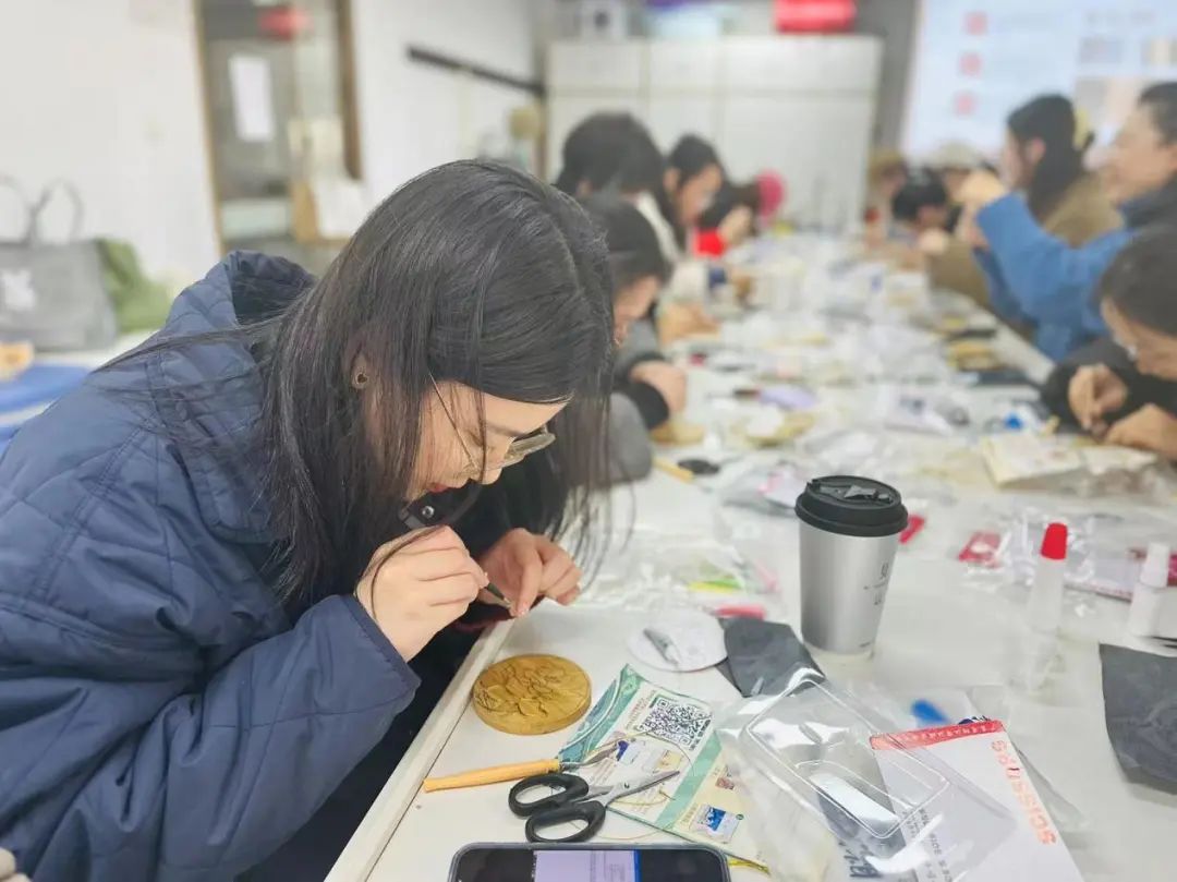 活動當天,女職工們按時到達活動教室,發(fā)揮巧思,施展妙手,或是“掐絲、剪絲、上砂、上膠”,或是“測量、造型、印刻、拋光”,或是“和面、打發(fā)、烘烤、裝點”,解鎖了一系列全新的體驗,收獲了節(jié)日的快樂和美好。